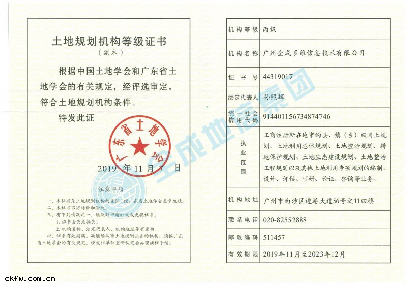 丙級土地(dì)規劃資質證書