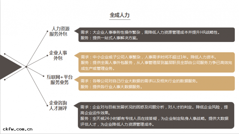 、企業人事外包、員工薪酬管理、福利服務外包、招聘服務、人才(cái)測評、政(zhèng)策咨詢(xún)、企業咨詢(xún)管理以及新(xīn)興互聯網+平台服務業務等
